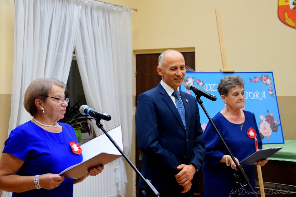 Wójt Maciej Mońka złożyć najserdeczniejsze życzenia z okazji Dnia Seniora oraz wręczył upominek na ręce Prezesa Stowarzyszenia. Zaprosił również na występ Leny Kuśmierskiej uczennicę Szkoły Podstawowej w Nowej Suchej przy akompaniamencie na gitarze P. Justyny Bartczak nauczycielki Szkoły Podstawowej w Nowej Suchej. Mała dziewczynka a głos który w niej drzemie wywołał wielkie brawa w podziękowaniu za jej występ.
