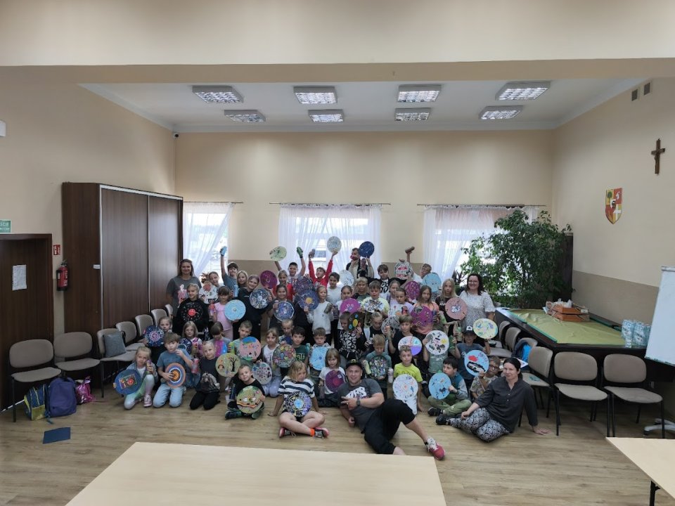 To już czwartek jak ten czas szybko leci dopiero zaczynaliśmy półkolonie a to już jutro ostatni dzień. Dzisiaj mieliśmy przygodę z graffiti stworzyliśmy płyty winylowe według własnych projektów, malowaliśmy puszki po sprayu, odbijaliśmy szablony, robiliśmy wlepki i wiele innych kolorowych rzeczy zobaczcie sami co stworzyły dzieciaki, Jutro niestety ale nastąpi zmiana planów pogoda trochę pokrzyżowała nam plany więc zamiast Stajni u Kowala udamy się do Happy Parku w Sochaczewie prosimy o zabranie skarpetek antypoślizgowych następnie udamy się do kina Odeon film wybrały dzieci poprzez głosowanie więc udajemy się na film pt. ,,Jak wytresować smoka" zbiórka w dniu jutrzejszym o 9:00